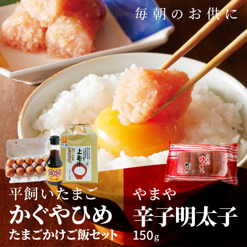 【ふるさと納税】C01302 平飼い卵の新鮮卵かけご飯セット&やまや辛子明太子150gセット【上毛町特別企画】