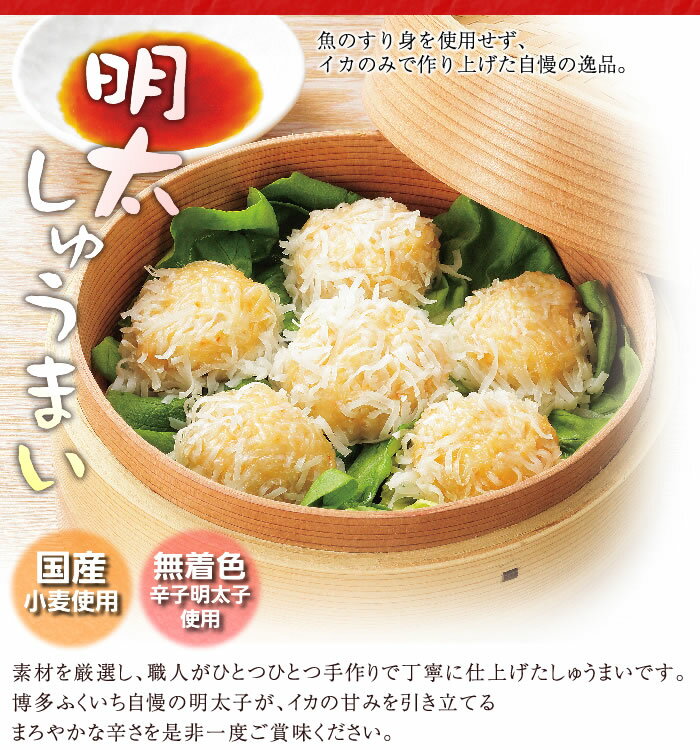 こちらの商品は送料通常通りです ※商品を複数ご注文で送料値引となっている場合、 北海道・沖縄は追加送料+1,000円 ■原材料 いか(ペルー産)、魚肉すり身(すけとうだらすり身、砂糖、その他)、玉ねぎ、しゅうまいの皮(小麦粉、還元水飴、その他)、植物油脂、辛子明太子(すけとうらだの卵、発酵調味料、食塩)、鶏卵、小麦粉(国産)、醤油、唐辛子/加工澱粉、調味料(アミノ酸等)、ソルビトール、酒精、リン酸塩(Na)、酸化防止剤(V.C)、酸味料、ナイアシン、酵素、発色剤(亜硝酸Na)、(一部に小麦・卵・いか・大豆を含む) ■原産地 イカ/ペルー産、すけとうだらの卵/アメリカ又はロシア産 ■内容量 8個入×3箱 ■賞味期限 冷凍で約3ヶ月間 ■配送方法 クール便:冷凍通常価格: 3,870円→3,000円!